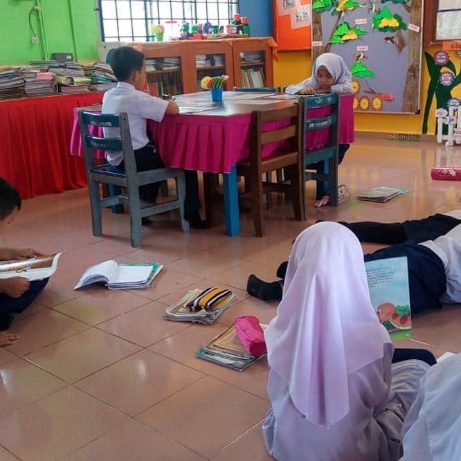 - Separate reading areas for younger and older students to create an inviting and productive space for all.